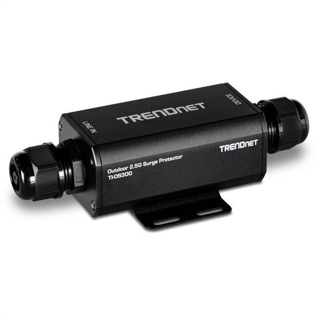 Der 2.5G-PoE++-Ethernet-Outdoor-Überspannungsschutz von TRENDnet, Modell TI-OS300, wird über die Ethernet-Verkabelung in Linie installiert, um interne Niederspannungs-Netzwerkgeräte vor Überspannungen zu schützen, die durch Blitzeinschläge, elektrische Überlastungen und fehlerhafte oder beschädigte Verkabelung verursacht werden. Der Überspannungsschutz unterstützt Netzwerkgeschwindigkeiten von bis zu 2,5 Gbit/s und PoE++ (95 W)-Geräte.
