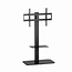Kenmerken: Metalen TV-vloerstandaard met stijlvolle voet van gehard glas Ondersteunt de meeste 43â - 86'' LCD TV's Kan tot 70 graden draaien en 15 graden kantelen TV in 3 stappen in hoogte verstelbaar Praktische plank voor apparatuur of materialen VESA-compatibel, max. 600 mm x 400 mm