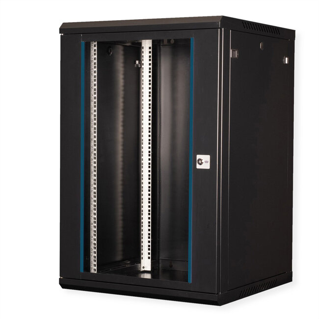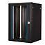 Inside, there are two pairs of galvanised profile rails with 483 mm (19") height units, which are also adjustable in depth. De robuuste staalconstructie bestaat uit hoogwaardig plaatstaal en is verkrijgbaar in zwart (RAL 9005) gepoedercoat.