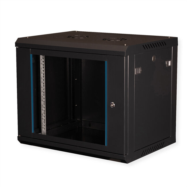 Binnenin is een paar gegalvaniseerde profielrails met 483 mm (19") hoogte-eenheden ingebouwd, die bovendien in de diepte verstelbaar zijn. Een extra paar profielrails kan achteraf worden gemonteerd. De robuuste staalconstructie bestaat uit hoogwaardig plaatstaal en is verkrijgbaar in zwart (RAL 9005) gepoedercoat.
