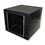De VALUE wandbehuizingen bewijzen dat dergelijke praktische oplossingen ook aantrekkelijk kunnen zijn. De zwarte, enigszins glanzende behuizingen zijn behoorlijk geschikt voor op kantoor. Een royale glazen inzet in de deur biedt een duidelijk zicht op alle ingebouwde actieve en passieve componenten, zelfs wanneer de deur gesloten is. Zowel de deur als de zijwanden kunnen worden verwijderd voor een optimale toegang tot de binnenkant van de behuizing; De kabelvoeding kan van boven of van onder worden uitgevoerd. De deur van de VALUE wandbehuizing wordt geleverd met een vergrendelbare draaihendel.